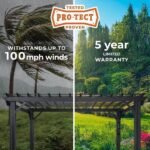 Offering an ample amount of shade, it’s perfect for all your social gatherings. The light-filtering soft canopy adds a touch of elegance while our exclusive PowerPort™ keeps your lights, music, and gadgets powered. With a solid 5-year warranty, it’s not just beautiful, it’s built to last!