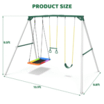 This heavy-duty swing set supports up to 660 lbs., allowing parents to swing alongside their children. Whether it’s classic belt swings, a spacious rectangle swing, or a fun trapeze bar, this set offers versatile play opportunities that will keep your little ones entertained for years to come!