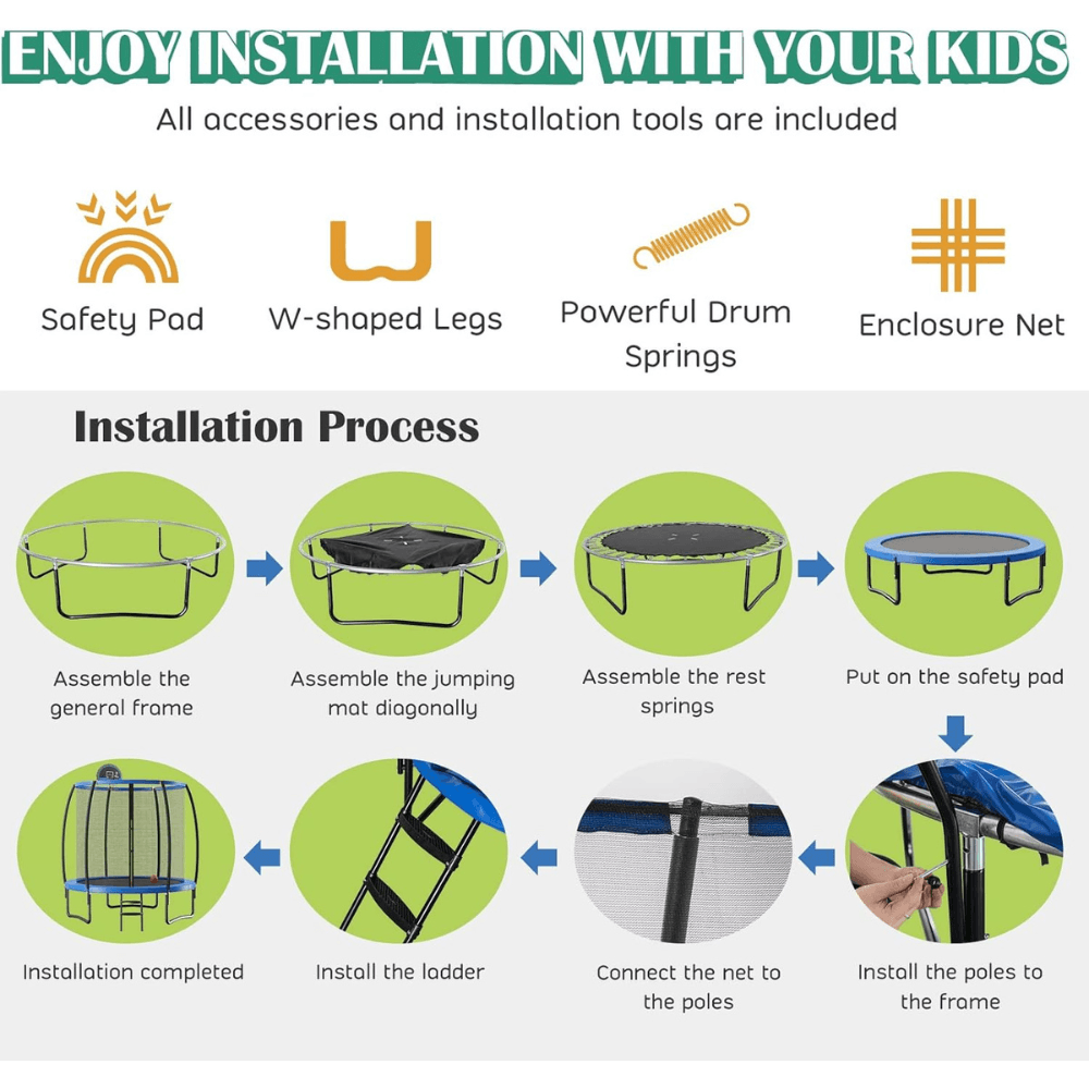 Get ready for endless outdoor excitement with the Giantex Trampoline, available in 8FT, 10FT, and 12FT sizes to fit any backyard space. Designed for safety, durability, and superior bounce performance, this ASTM-approved trampoline is built to provide kids, teens, and even adults with a secure and fun jumping experience.