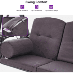 Be the first to review “PURPLE LEAF 3-seat Outdoor Patio Porch Swing Adjustable Backrest, Cushions and Pillow Included”