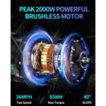 • Top Speed: Reach speeds up to 36 MPH, ensuring a thrilling ride whether on urban roads or rugged trails.