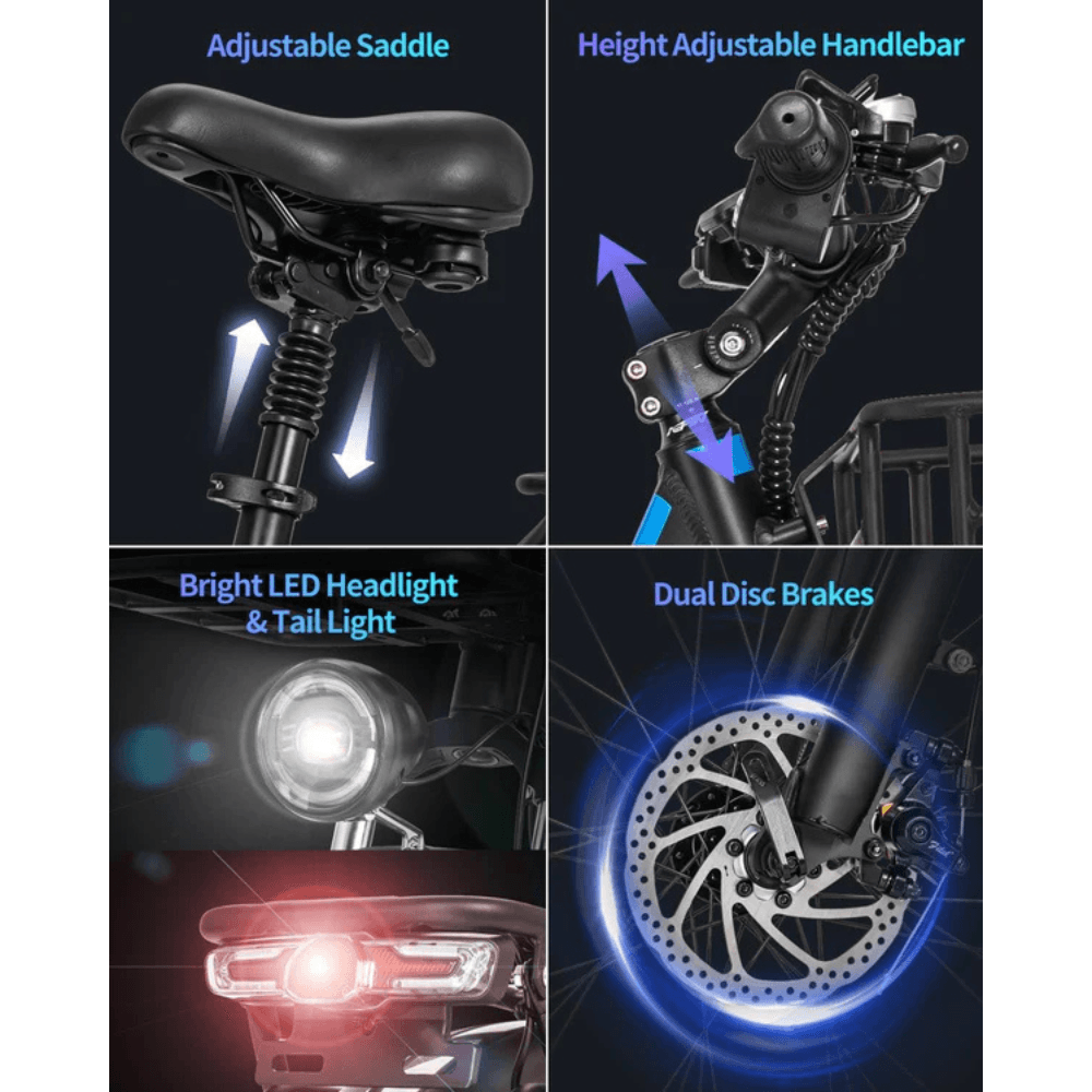 • Built-In Storage: An integrated basket offers convenient cargo space for your essentials on the go.