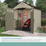 Upgrade your outdoor storage solution with the Suncast 7′ x 7′ Resin Outdoor Storage Shed — a secure, space-saving, and weather-resistant addition to your backyard!